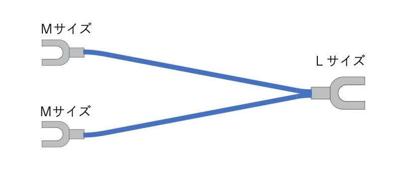 本ケーブルは、アースケーブルWTS-E5700をベースに、V分岐構造とした特注品ケーブルです。 下記の2種類のケーブルセットとなります。 <ケーブル仕様> (1) アースケーブル WTS-E5700(V分岐タイプ) ※長さ1.0m ※端末処理 2本側:Mサイズ−1本側:Mサイズ 価格:20,800円(税込) (2) アースケーブル WTS-E5700(V分岐タイプ) ※長さ1.0m ※端末処理 2本側:Mサイズ−1本側:Lサイズ 価格:21,000円(税込) 2セット合計価格 20,800円+21,000円=41,800円(税込・送料無料) <Yラグ端子仕様> <機器への接続イメージ>